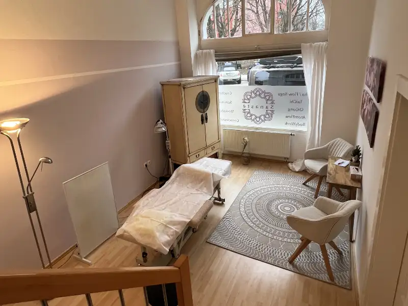 Die hellen, liebevoll eingerichteten Räume der schönen Praxis Sanasté schaffen eine ruhige Umgebung, die es leicht macht, loszulassen. Sanfte Farben, natürliche Materialien und dezente Akzente laden zum Durchatmen ein.